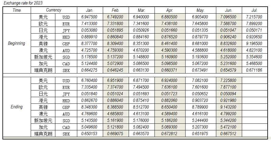 2023年6月外匯匯率,來源中國人民銀行供參考。